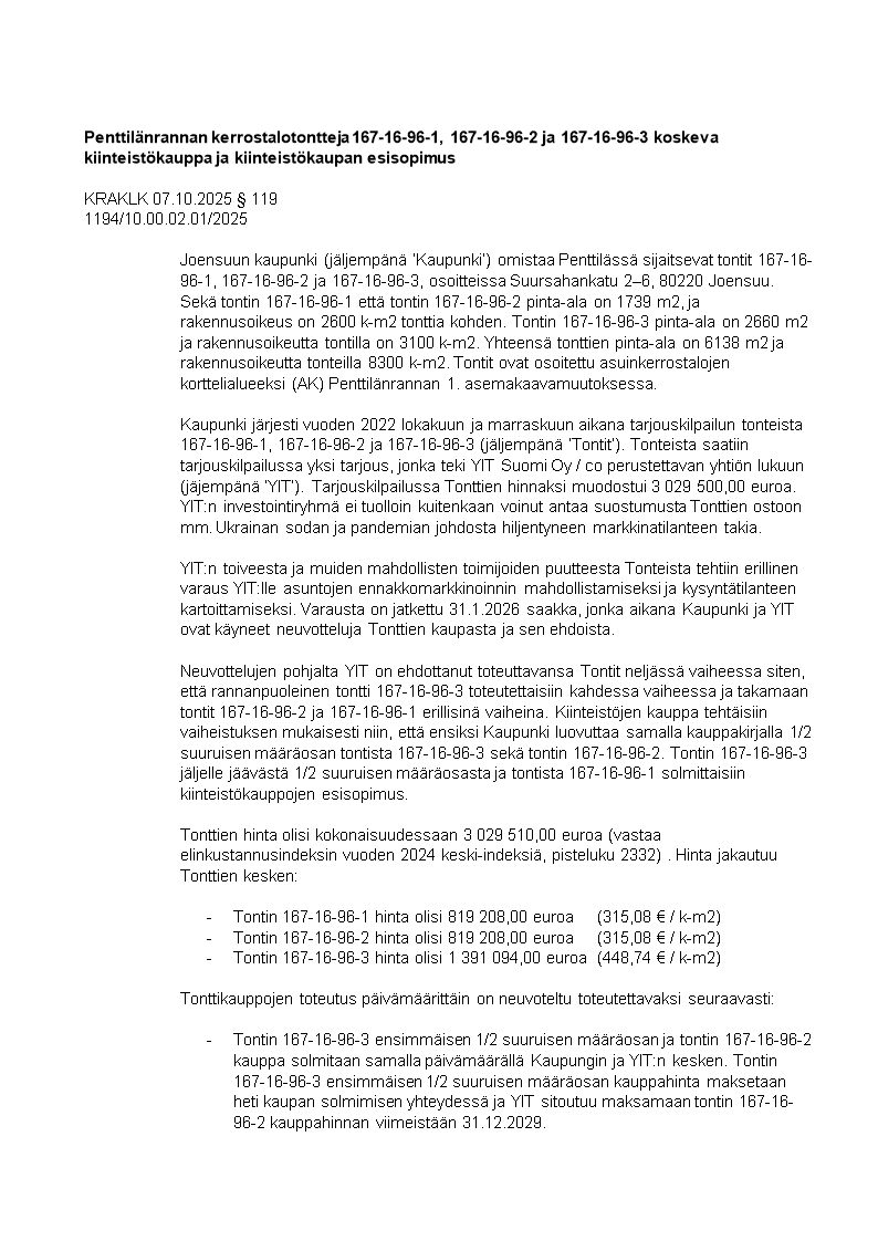 Pöytäkirja 07.10.2025/Pykälä 119