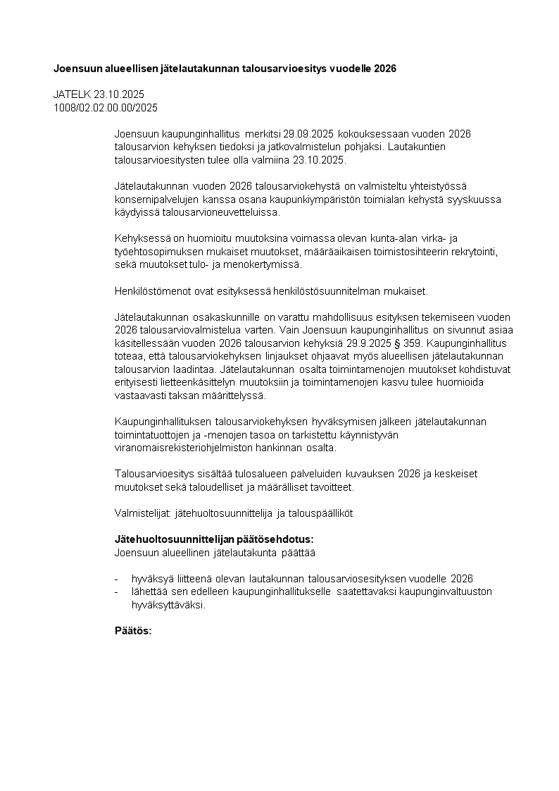 Joensuun alueellinen jätelautakunta