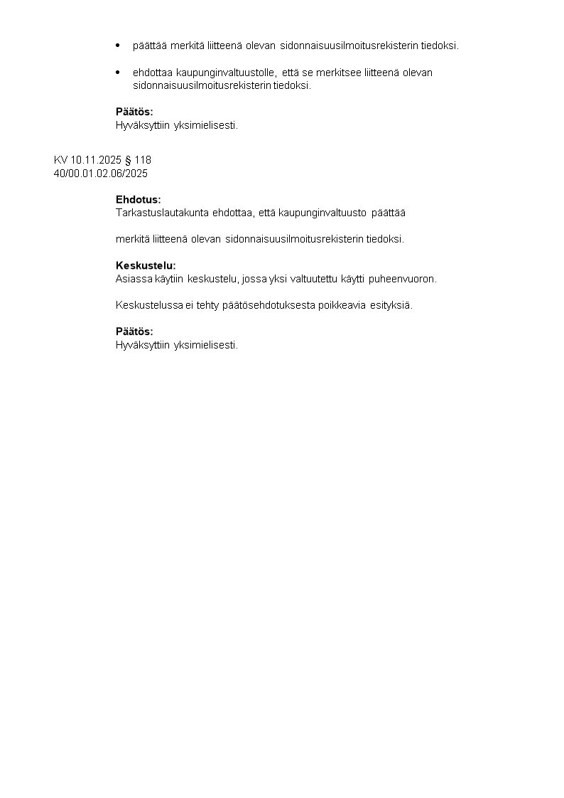 Pöytäkirja 10.11.2025/Pykälä 118