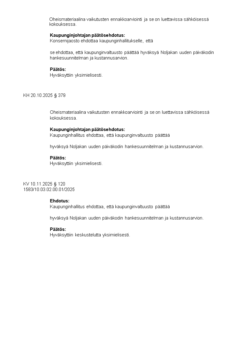 4 Noljakan uusi päiväkoti, hankesuunnitelma, 2025