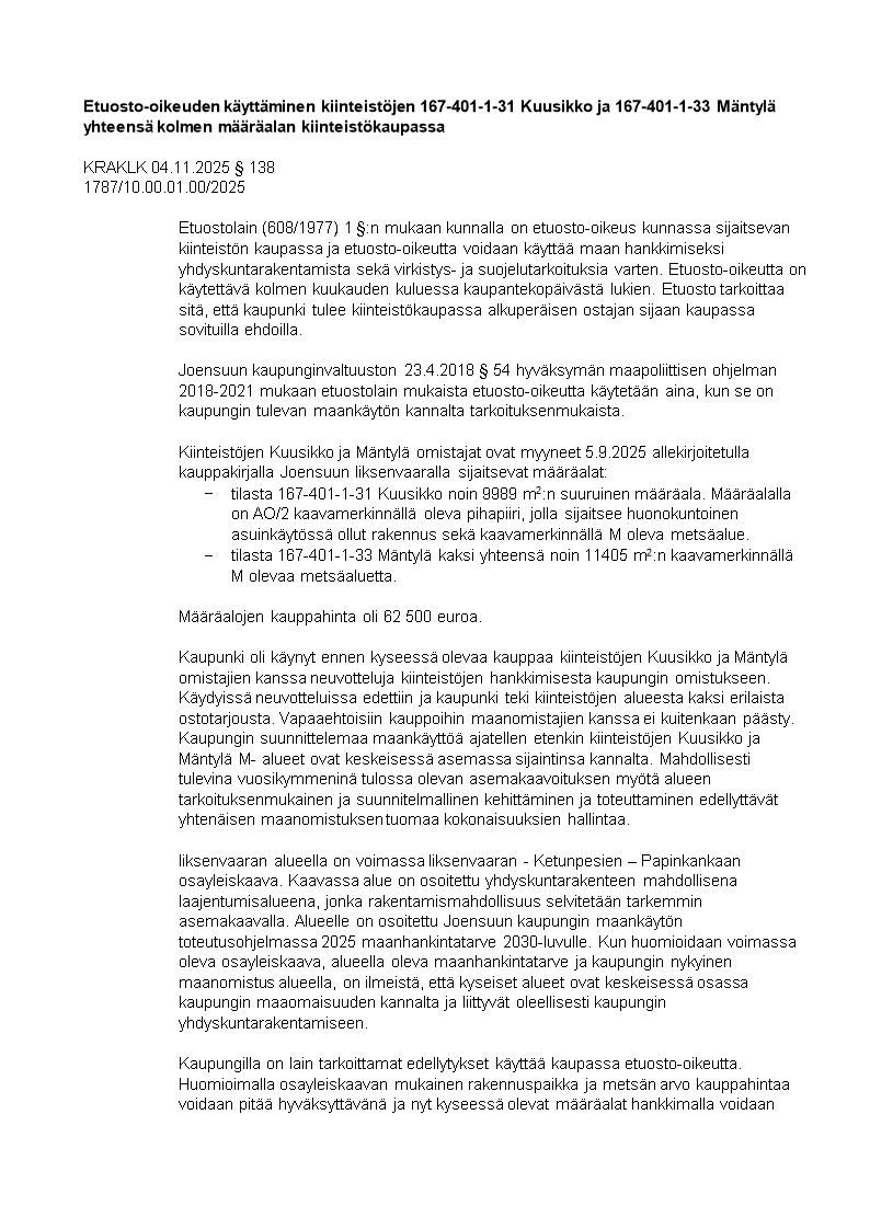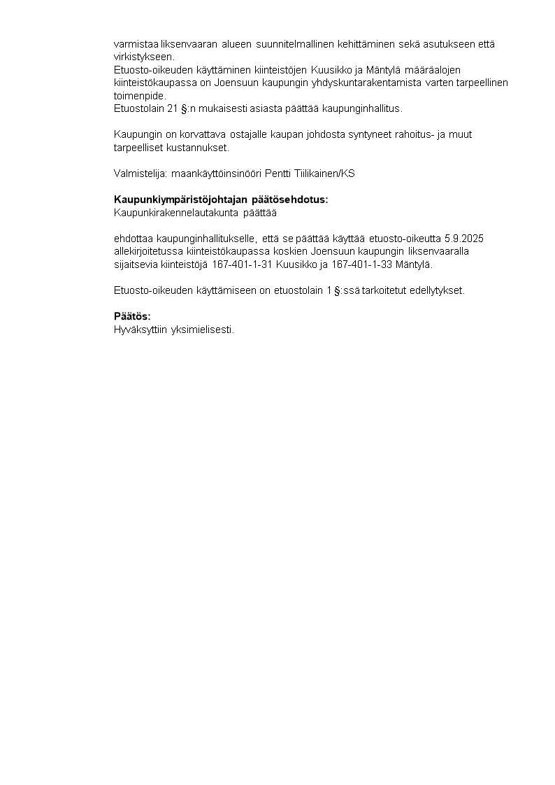 4 Kartta kiinteistöistä 167-401-1-31 ja 167-401-1-33