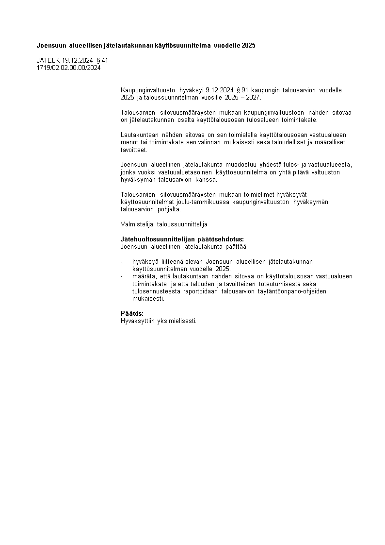 Pöytäkirja 19.12.2024/Pykälä 41