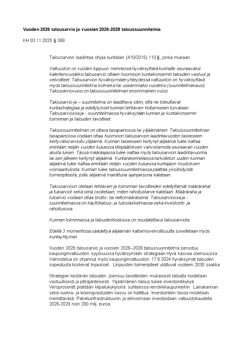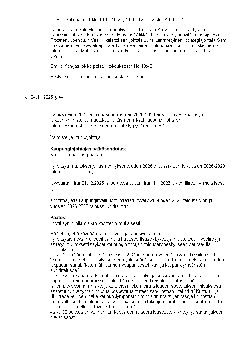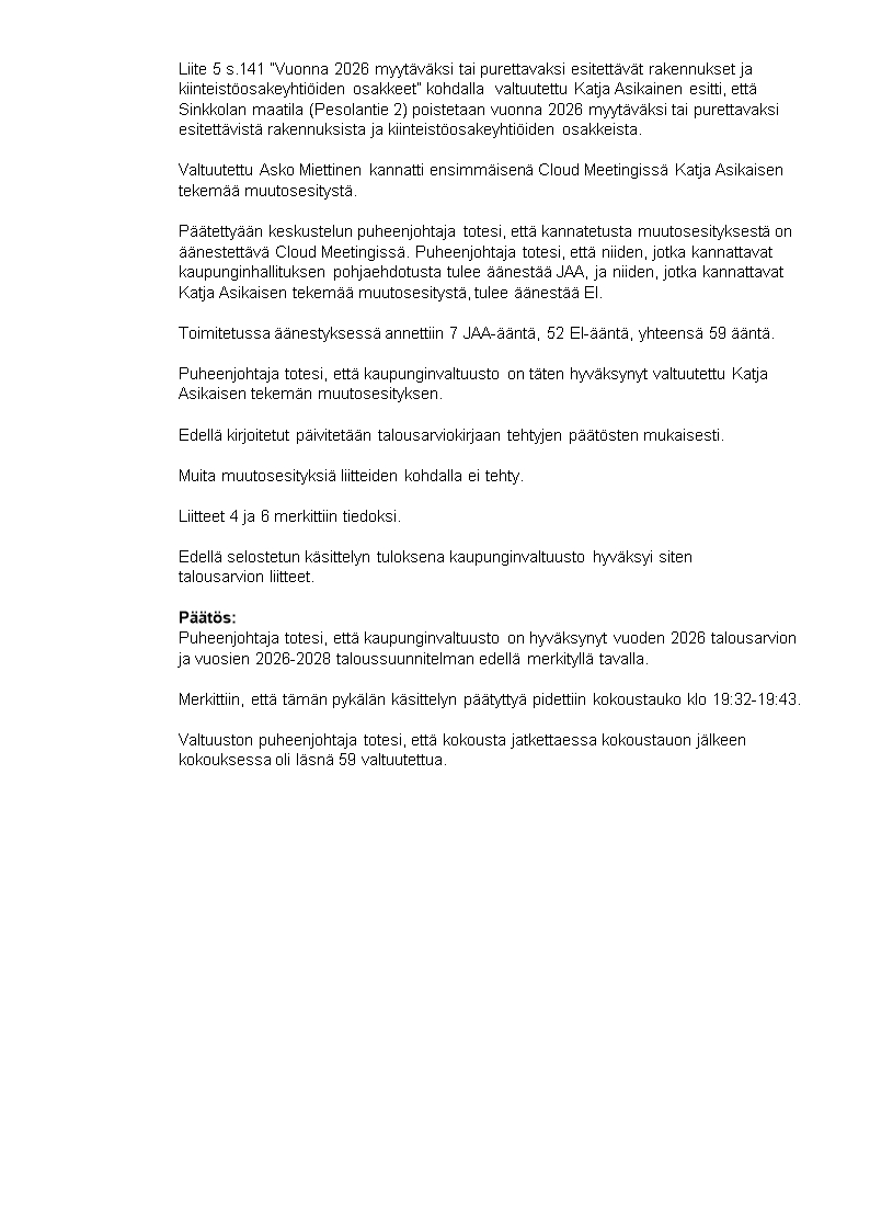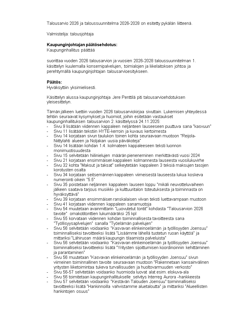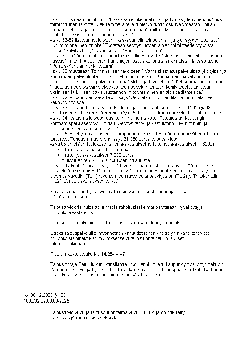 Pöytäkirja 08.12.2025/Pykälä 139