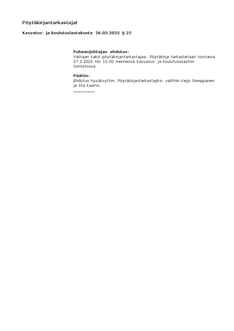 Pöytäkirja 26.03.2025/Pykälä 22