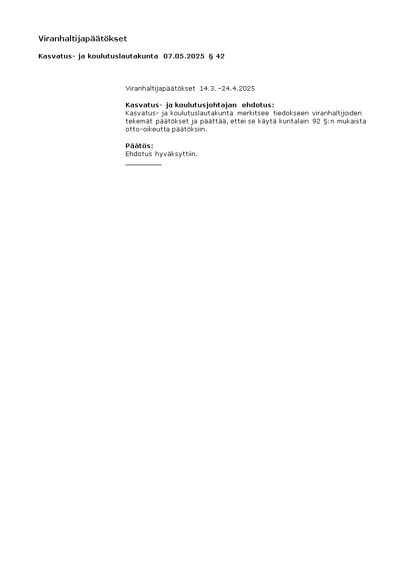 Liite 3 Päätösluettelo 14.3.-24.4.2025 kasvatus ja koulutus