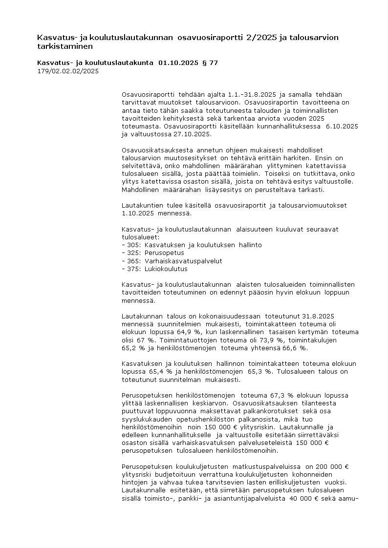 Pöytäkirja 01.10.2025/Pykälä 77
