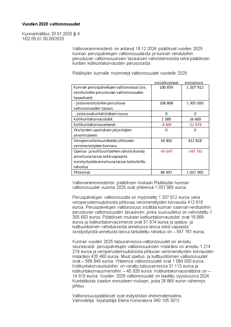 Pöytäkirja 20.01.2025/Pykälä 4