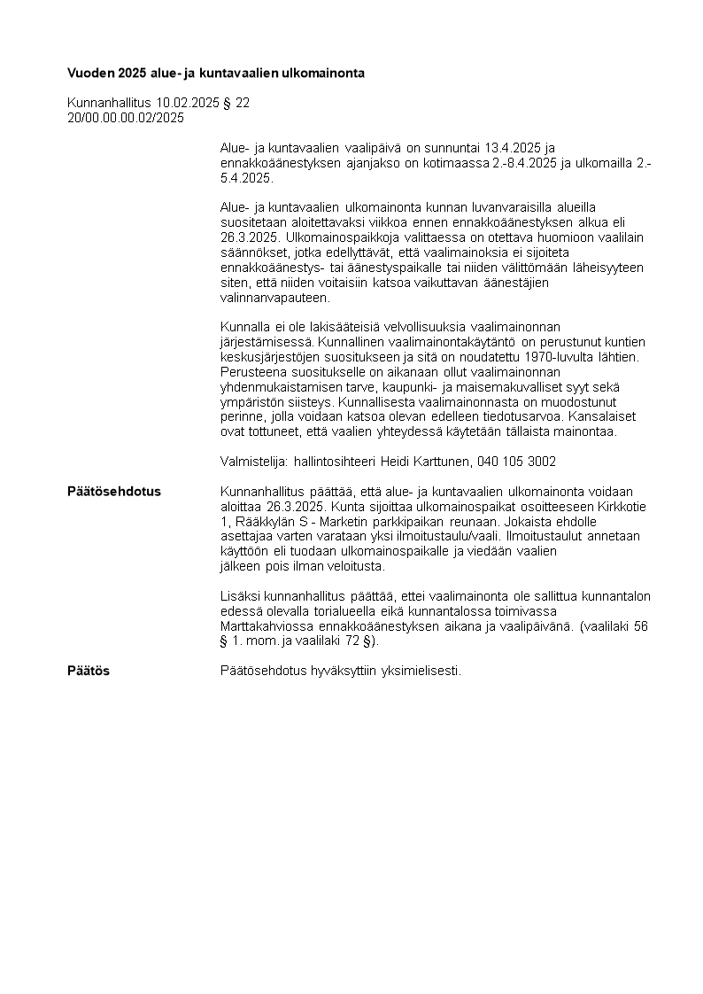 Pöytäkirja 10.02.2025/Pykälä 22