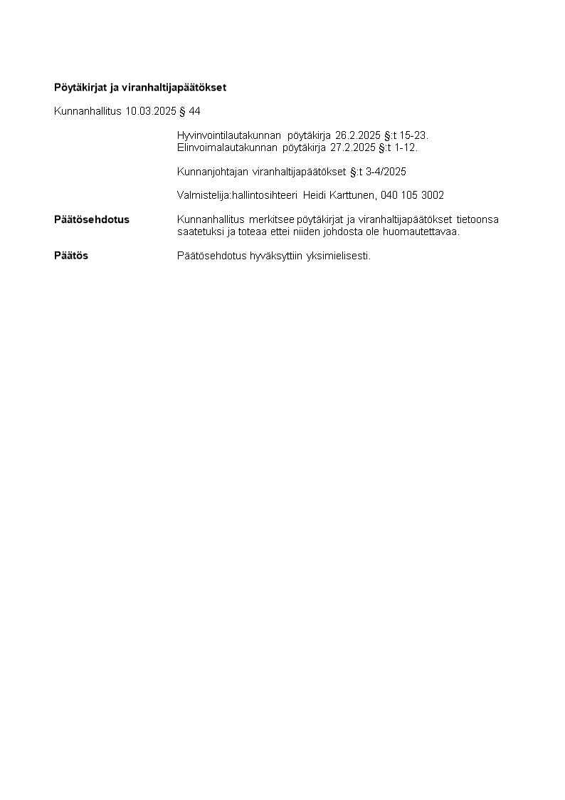 Pöytäkirja 10.03.2025/Pykälä 44
