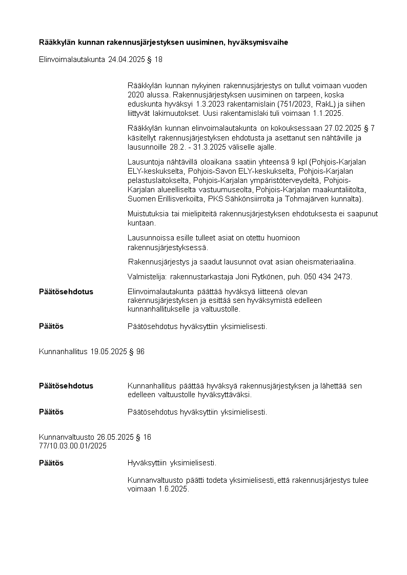 9 Rääkkylän rakennusjärjestys hyväksytty 26.5.2025