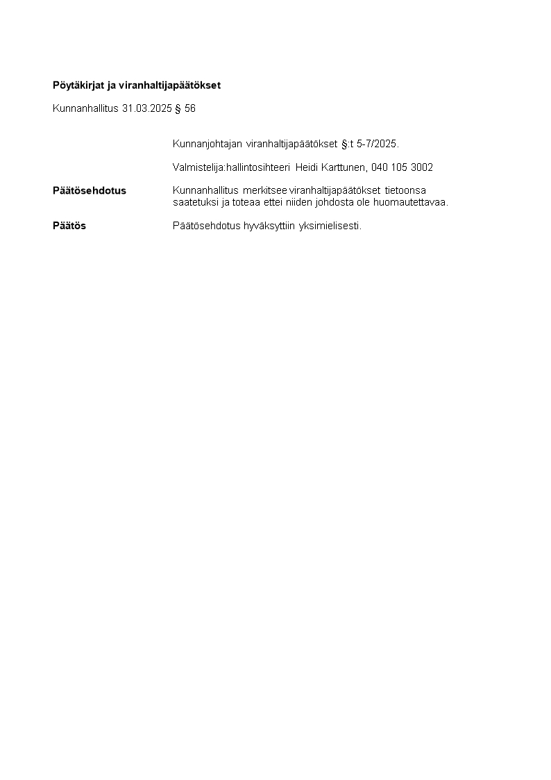 Pöytäkirja 31.03.2025/Pykälä 56