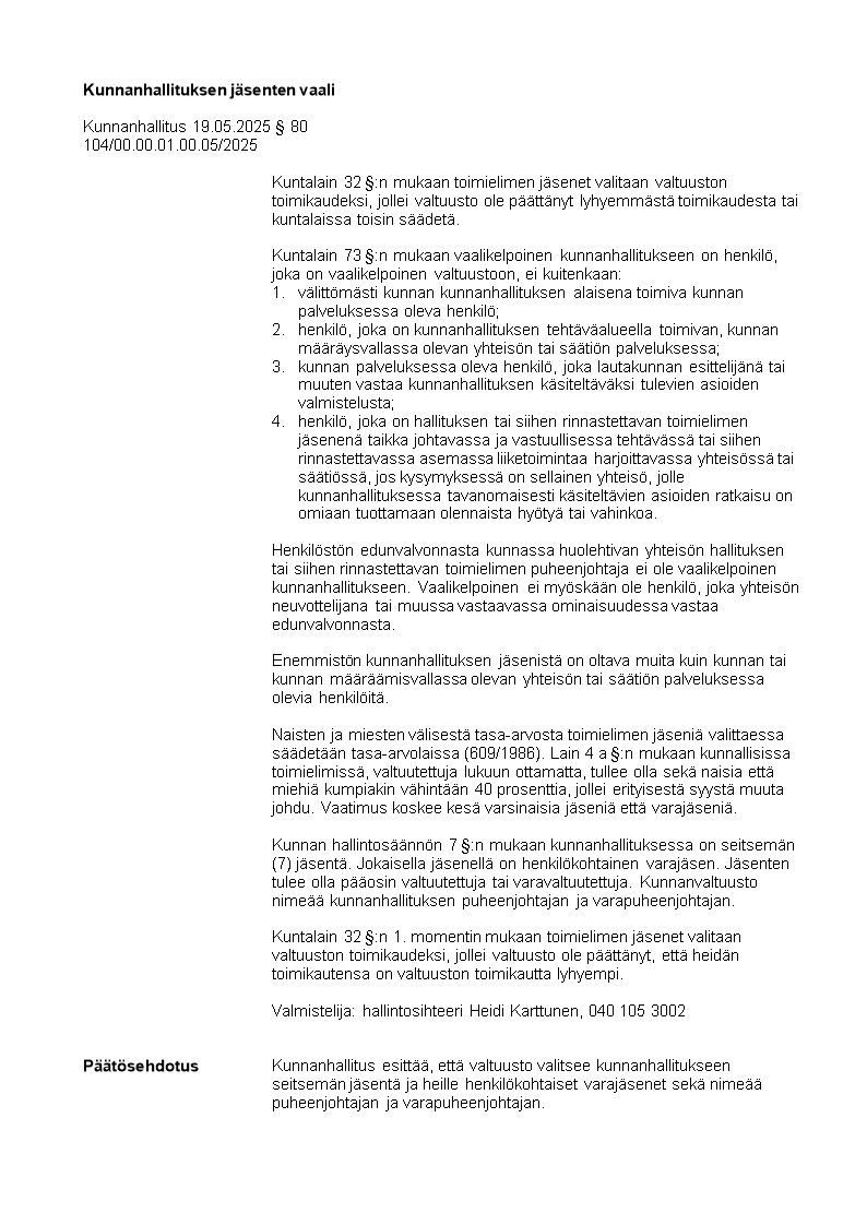 Pöytäkirja 19.05.2025/Pykälä 80