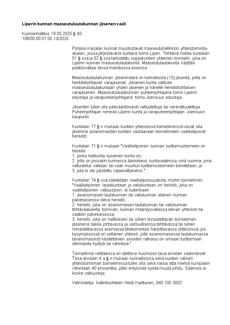 Pöytäkirja 19.05.2025/Pykälä 93