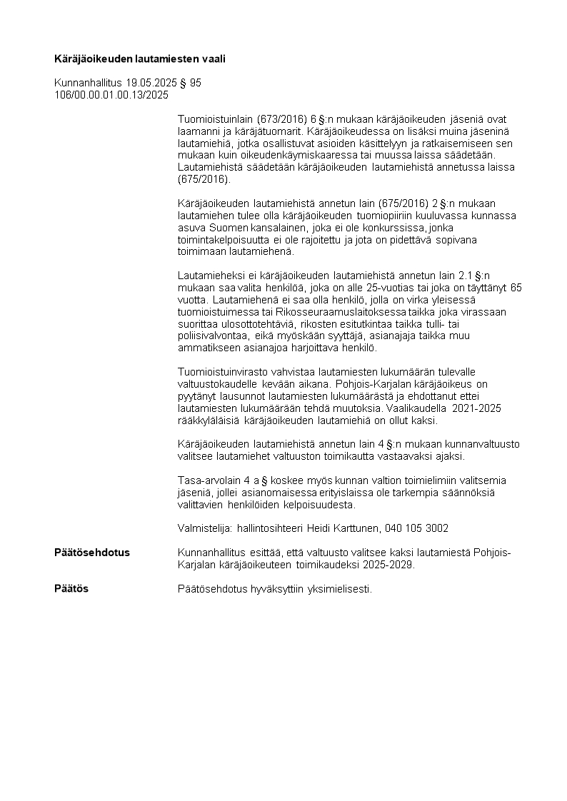 Pöytäkirja 19.05.2025/Pykälä 95