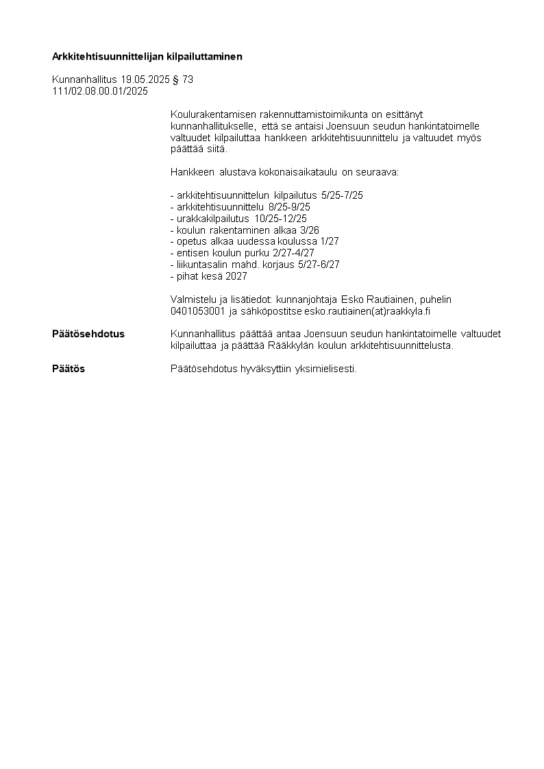 Pöytäkirja 19.05.2025/Pykälä 73