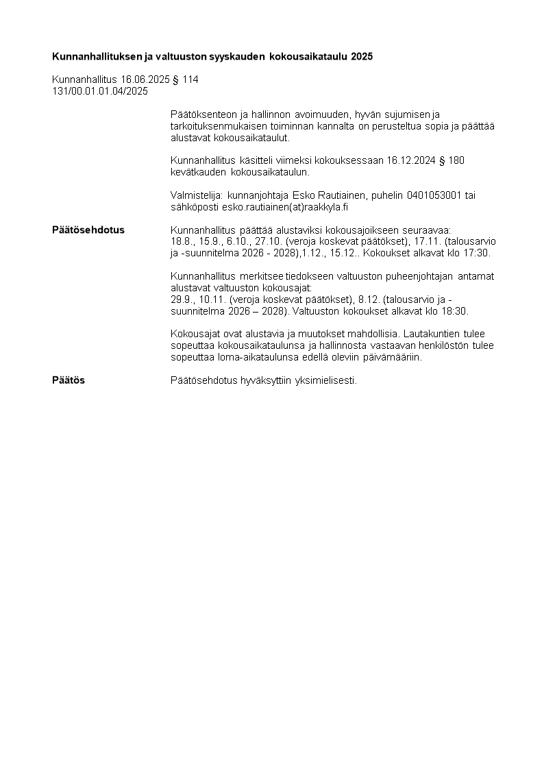 Pöytäkirja 16.06.2025/Pykälä 114