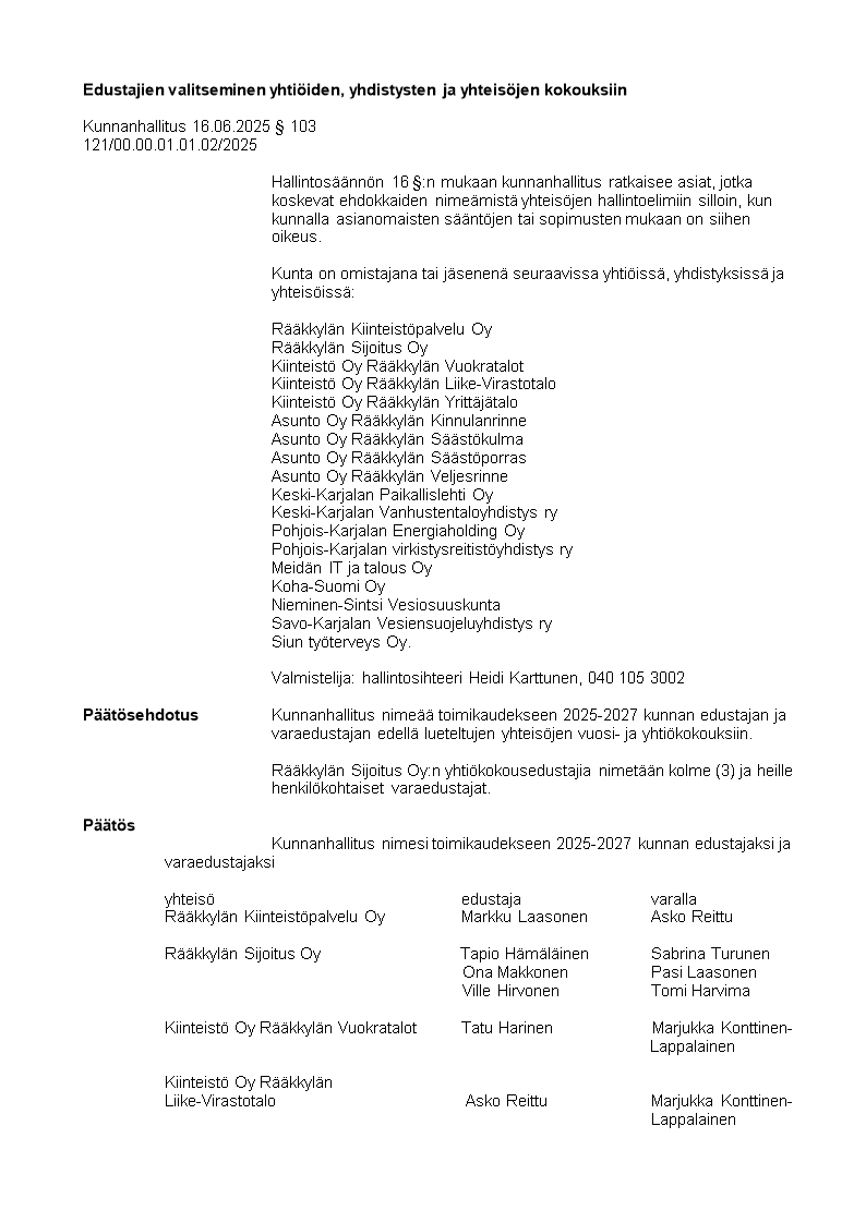 Pöytäkirja 16.06.2025/Pykälä 103