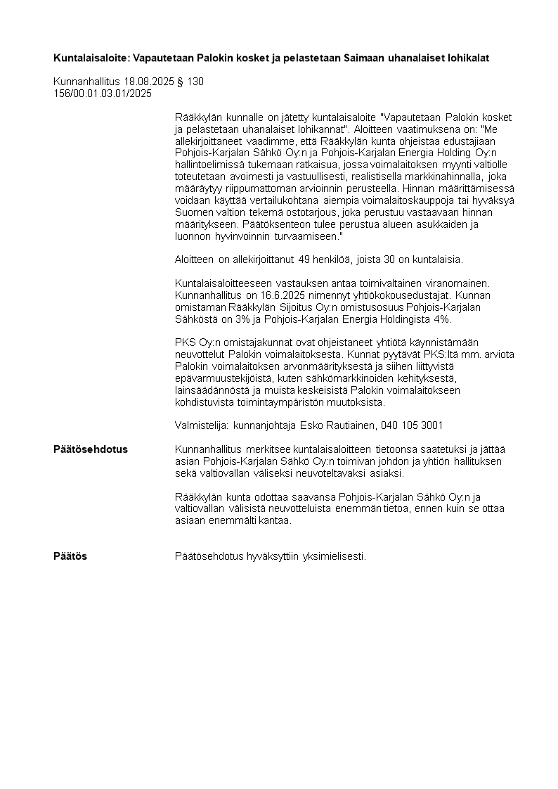 Pöytäkirja 18.08.2025/Pykälä 130