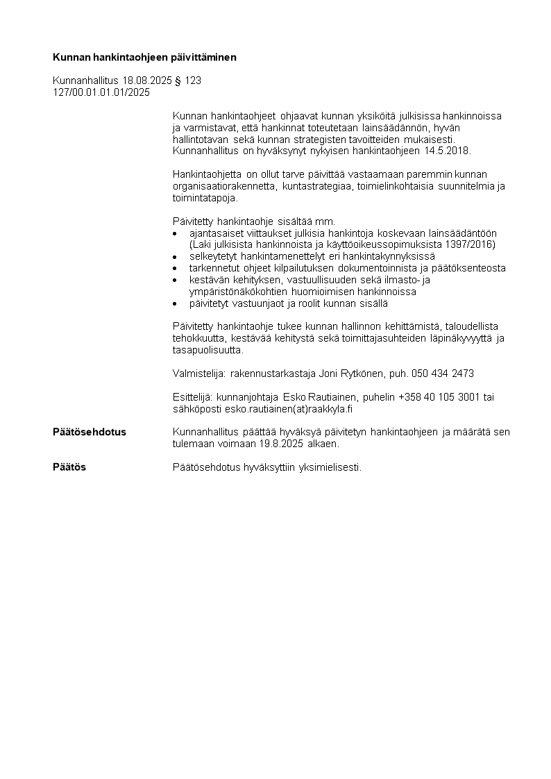 7 Päivitetty hankintaohje hyväksytty 18.8.2025