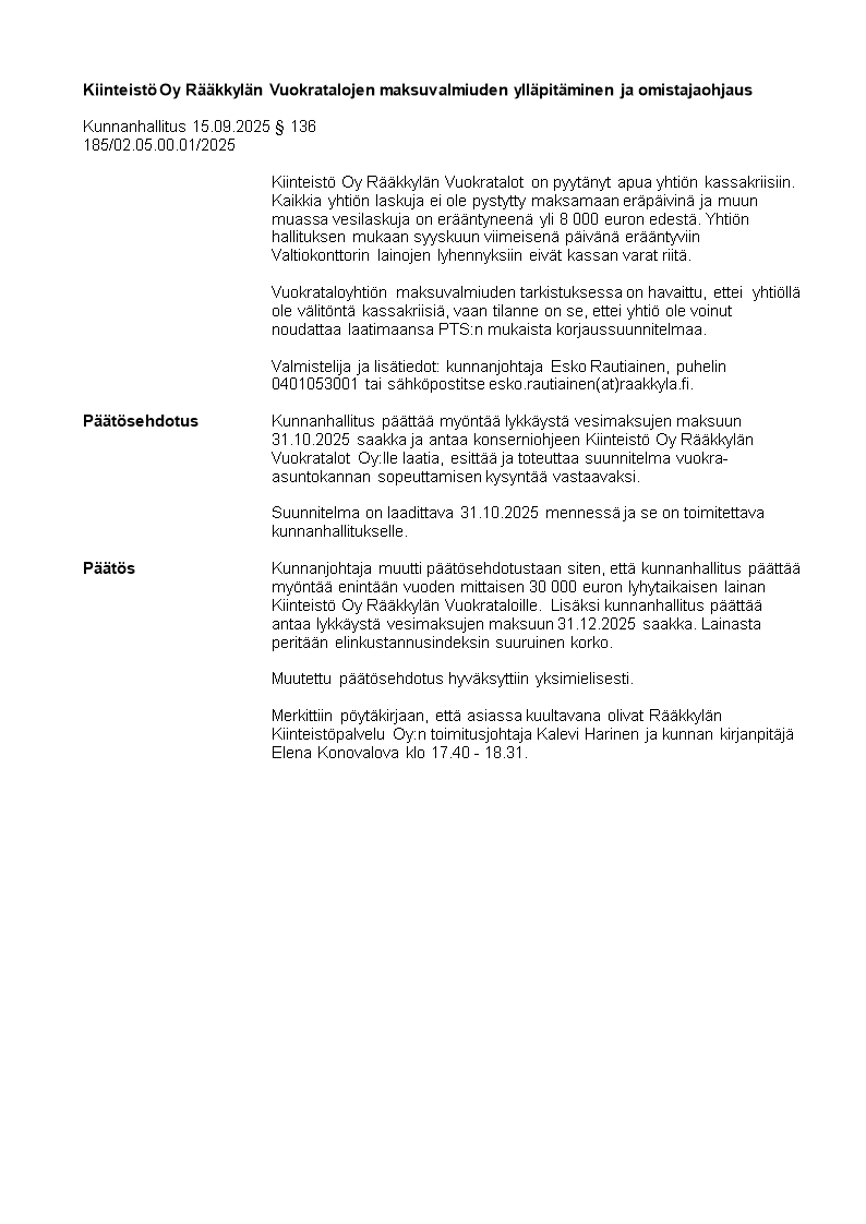 Pöytäkirja 15.09.2025/Pykälä 136