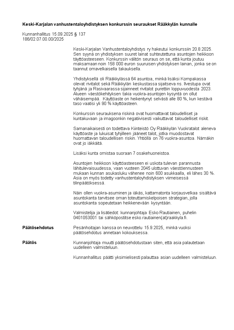 Pöytäkirja 15.09.2025/Pykälä 137