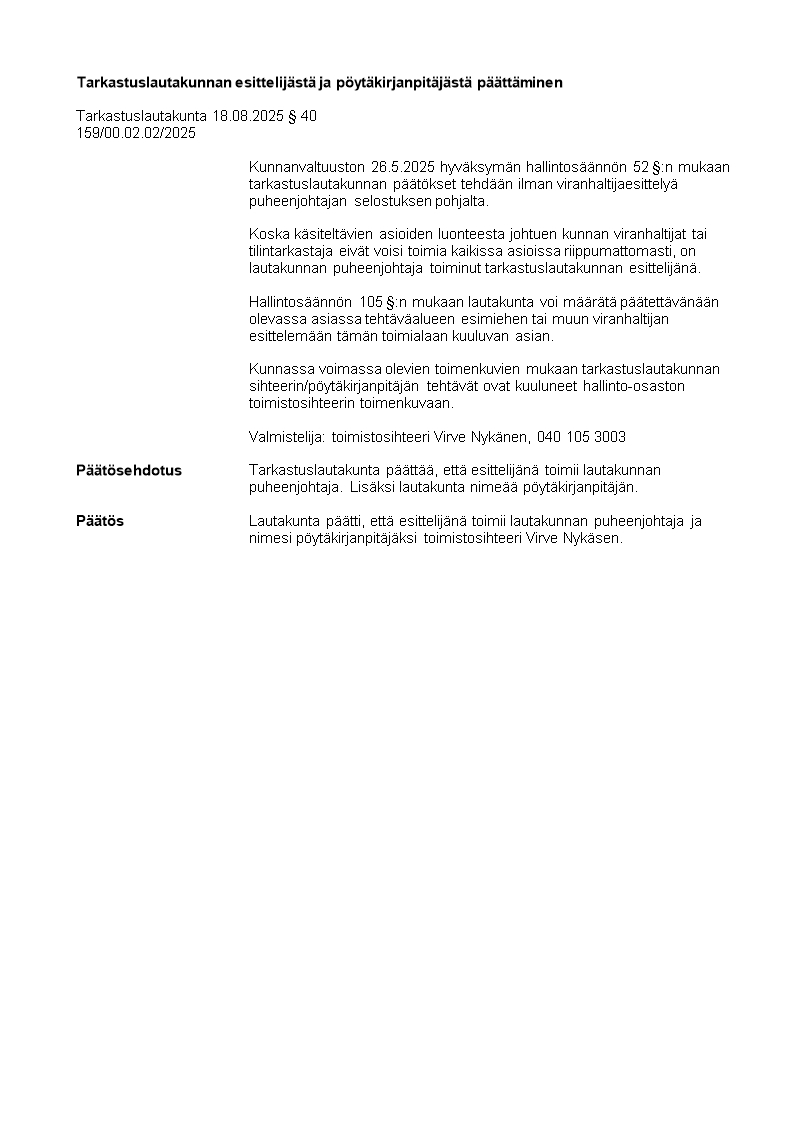 Pöytäkirja 18.08.2025/Pykälä 40