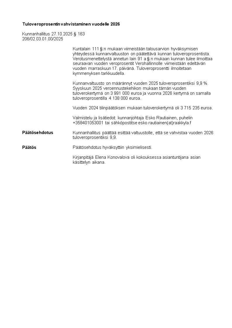 Pöytäkirja 27.10.2025/Pykälä 163