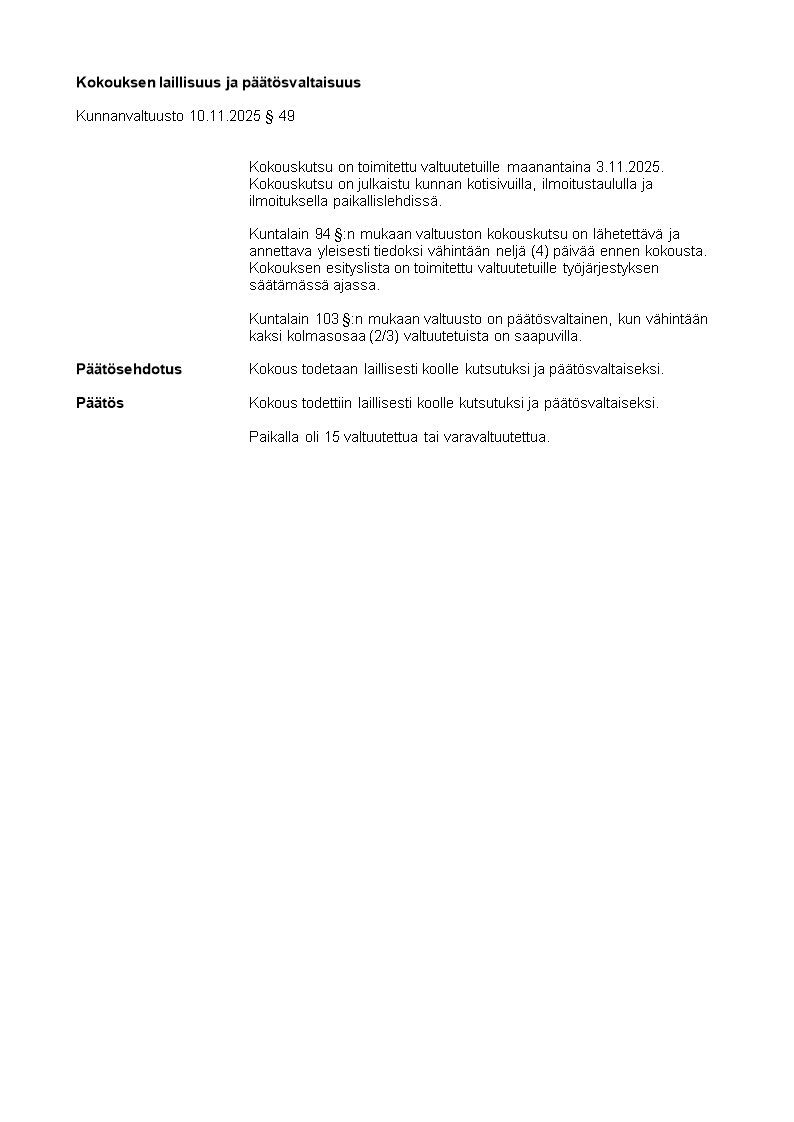 Pöytäkirja 10.11.2025/Pykälä 49