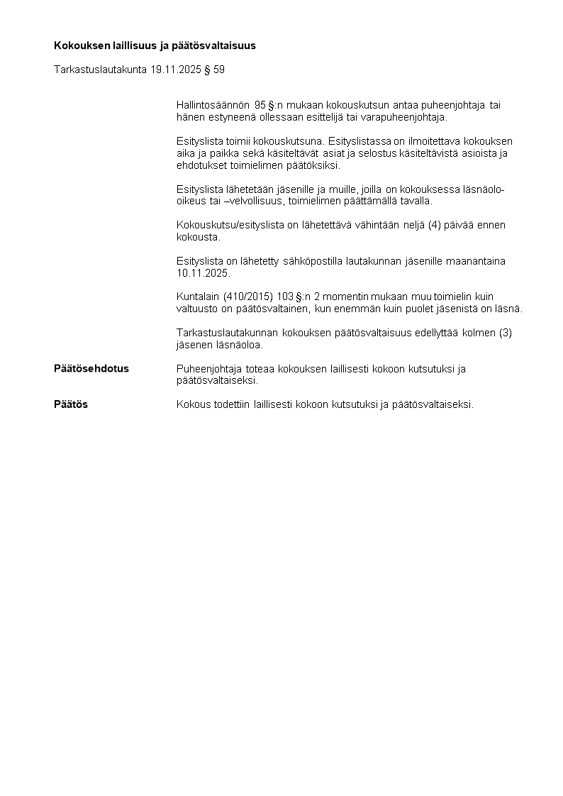 Pöytäkirja 19.11.2025/Pykälä 59