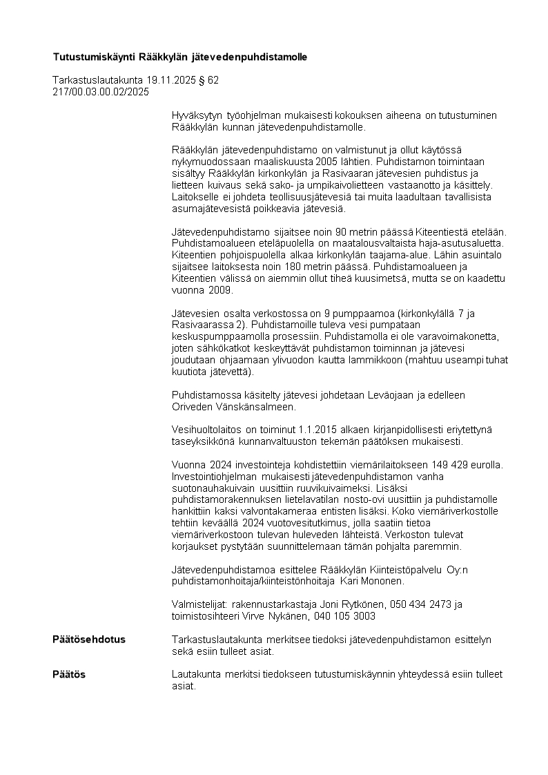 Pöytäkirja 19.11.2025/Pykälä 62
